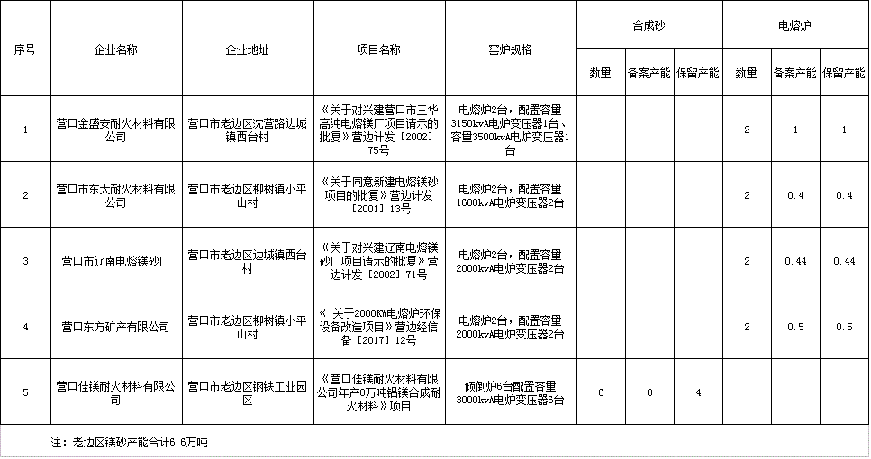 老邊區鎂砂生產企業產能壓減結果明細