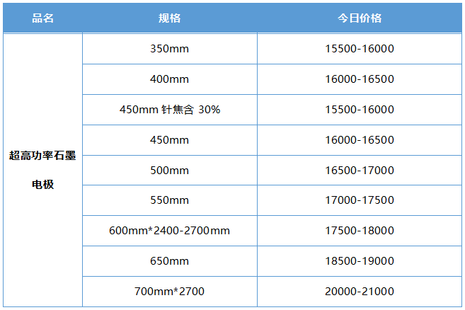 9月2日超高功率石墨電極價格行情(主流廠家/元/噸)