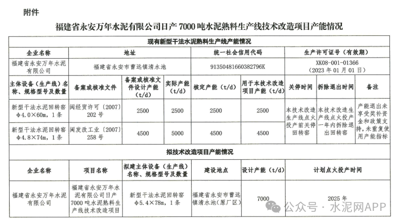 9月5日,福建省工信廳發布“關于撤銷福建省永安萬年水泥有限公司日產7000噸水泥熟料生產線技術改造項目方案的公告”。
