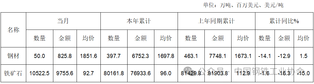 2025年8月鋼材、鐵礦石進口數(shù)據(jù)