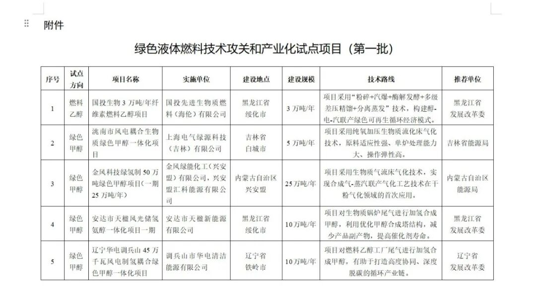 附件:綠色液體燃料技術攻關和產業化試點項目(第一批)