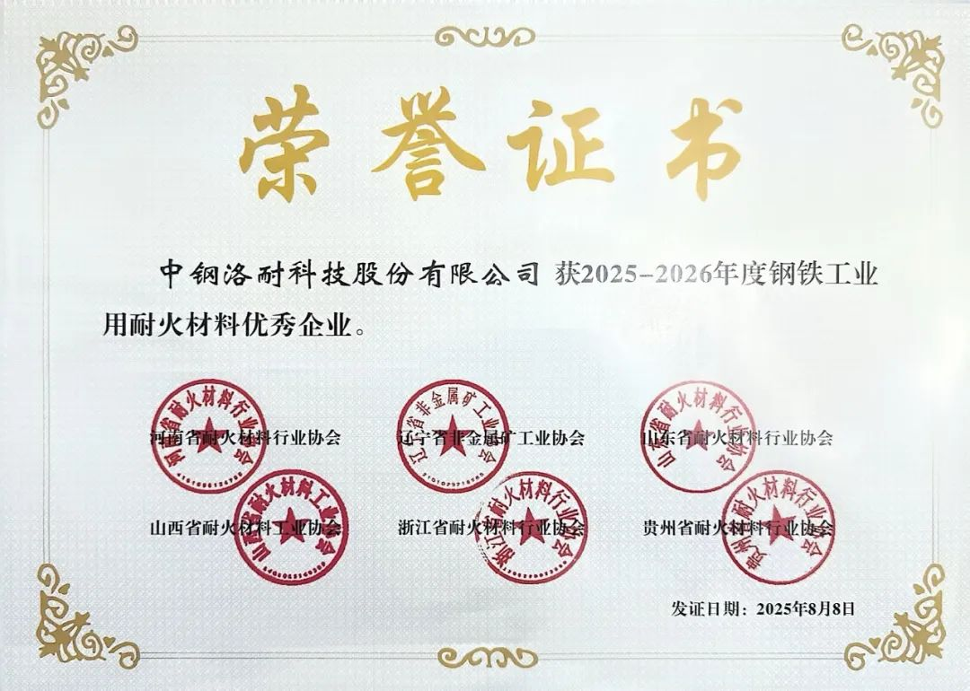 近日,中鋼洛耐憑借在技術創新、產品品質及綠色發展領域的卓越表現,榮獲 “2025-2026 年度鋼鐵工業用耐火材料優秀企業”榮譽稱號。該獎項由河南省耐火材料行業協會聯合遼寧、山東、山西、浙江、貴州等五省行業協會共同評選頒發,旨在表彰引領行業高質量發展的標桿企業。