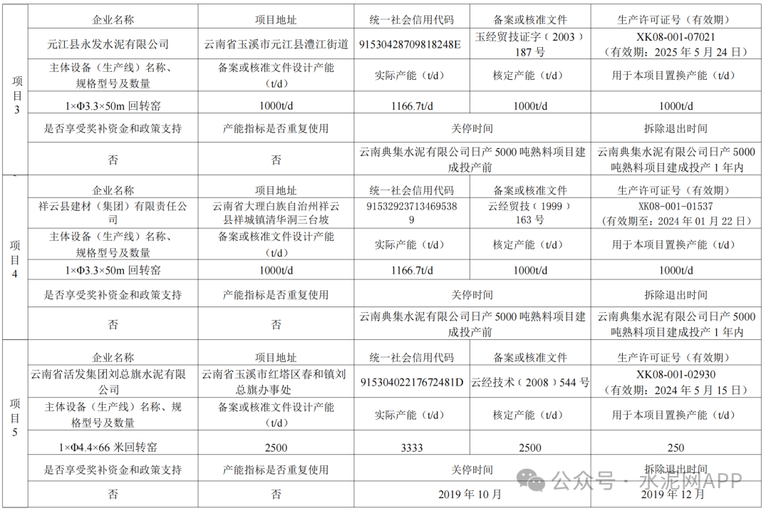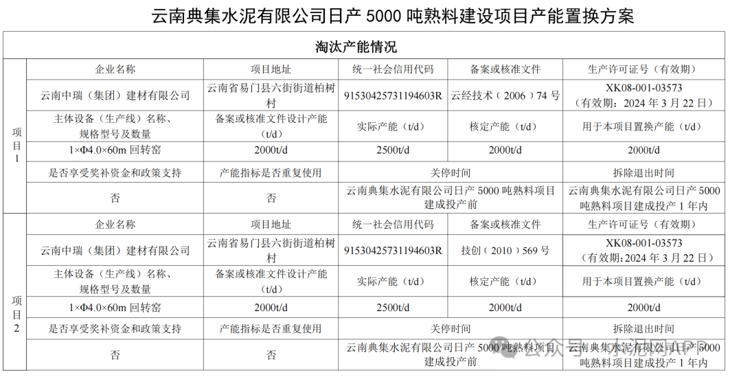 云南典集水泥有限公司申請撤銷“云南典集水泥有限公司日產(chǎn)5000噸熟料建設(shè)項(xiàng)目產(chǎn)能置換方案”。按照原計(jì)劃,該企業(yè)擬建一條5000t/d熟料生產(chǎn)線,退出產(chǎn)能來自云南中瑞(集團(tuán))建材有限公司2條2000t/d、元江縣永發(fā)水泥有限公司1000t/d、祥云縣建材(集團(tuán))有限責(zé)任公司1000t/d、云南省活發(fā)集團(tuán)劉總旗水泥有限公司2500t/d(用于本項(xiàng)目250t/d)共計(jì)5條生產(chǎn)線。