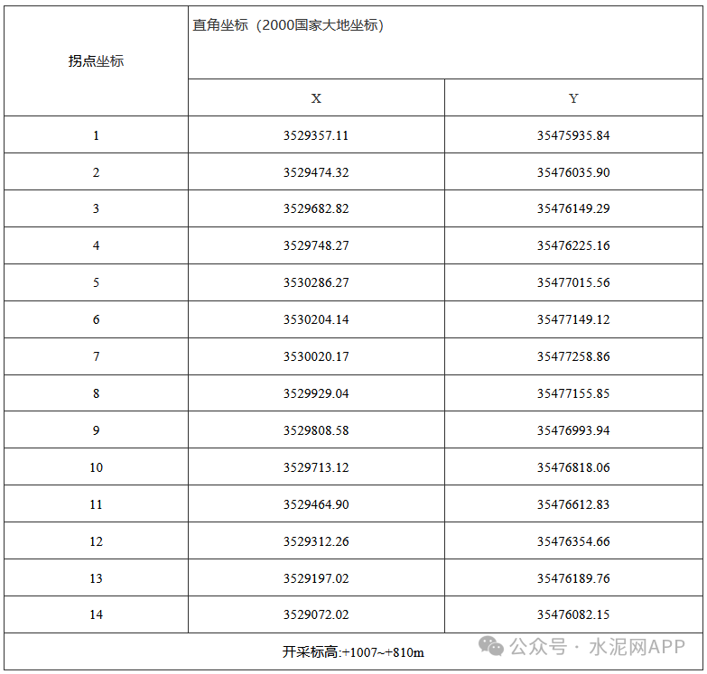 采礦權范圍:面積0.569平方千米,拐點坐標如下(2000國家大地坐標):