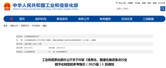 9月16日,工業和信息化部發布關于印發《場景化、圖譜化推進重點行業數字化轉型的參考指引(2025版)》的通知。