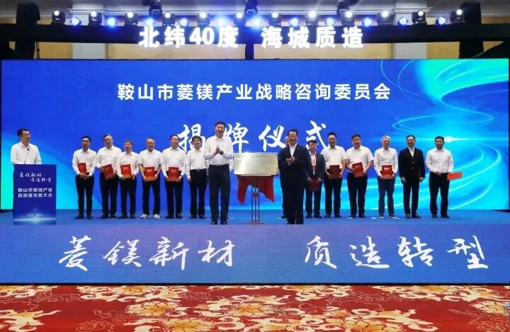 王忠昆與彭壽共同為鞍山市菱鎂產(chǎn)業(yè)戰(zhàn)略咨詢委員會(huì)揭牌。