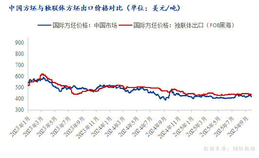 圖一:2023-2025年中國鋼坯與獨聯體方坯出口價格對比