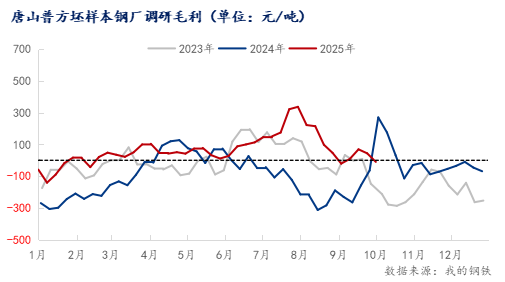 圖四:2023-2025年唐山普方坯樣本鋼廠調研毛利