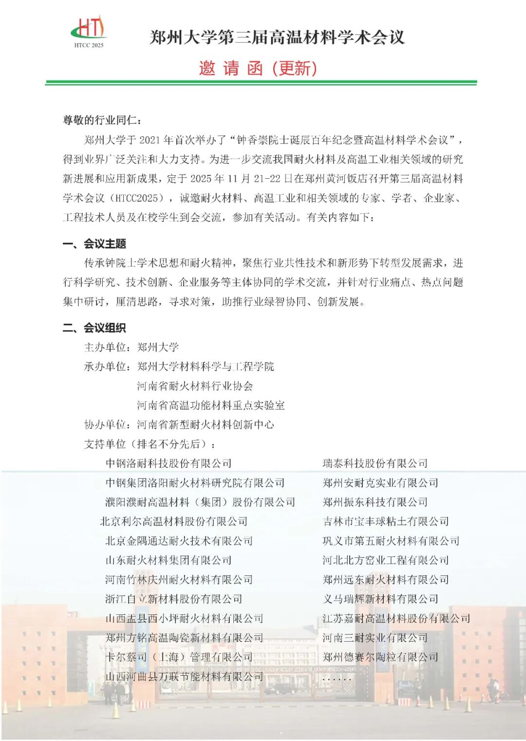 鄭州大學第三屆高溫材料學術(shù)會議 邀請函
