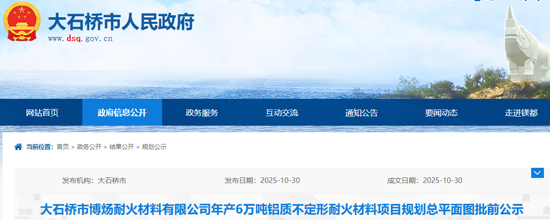 大石橋市博煬耐火材料有限公司年產6萬噸鋁質不定形耐火材料項目規劃總平面圖批前公示 ?