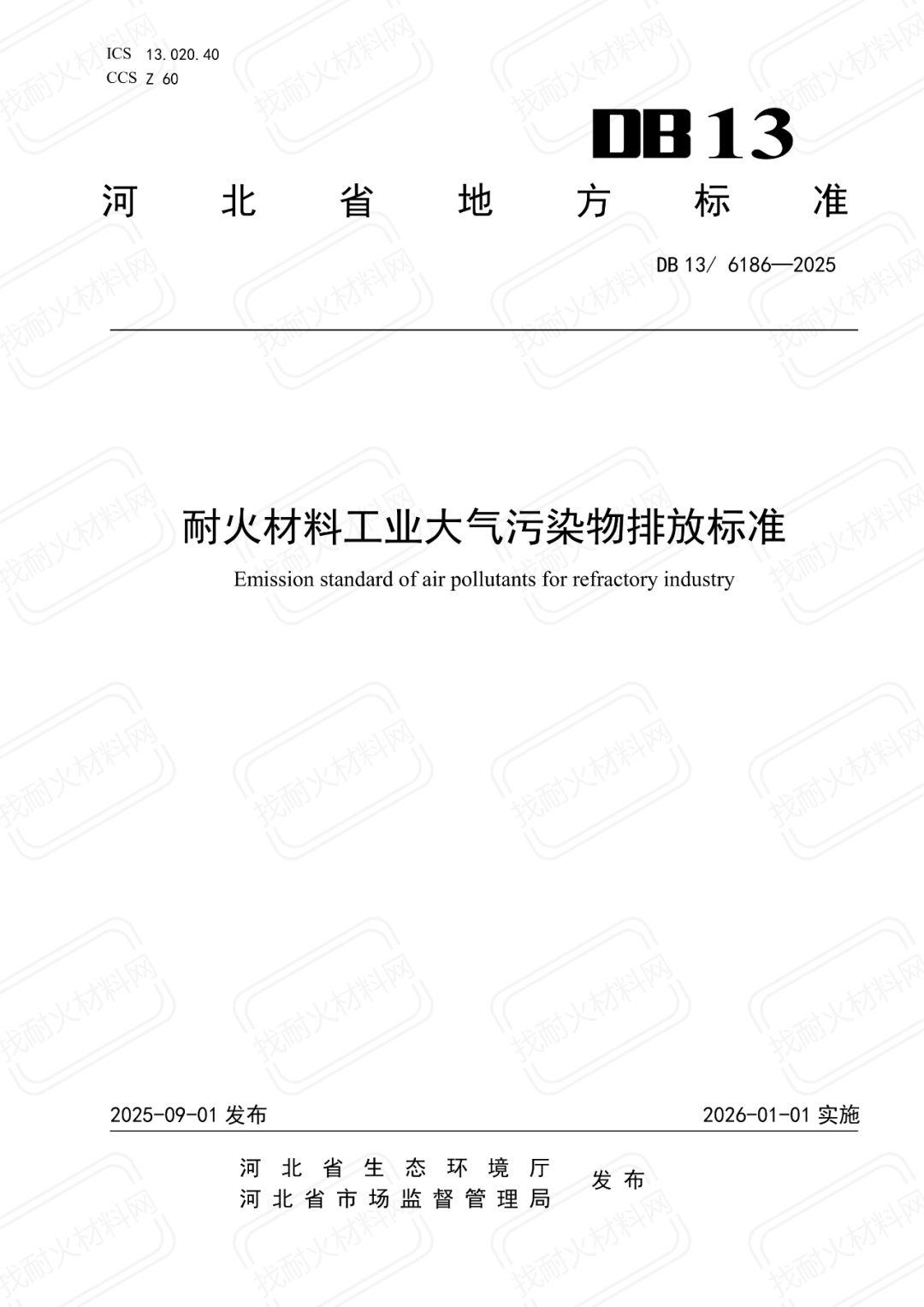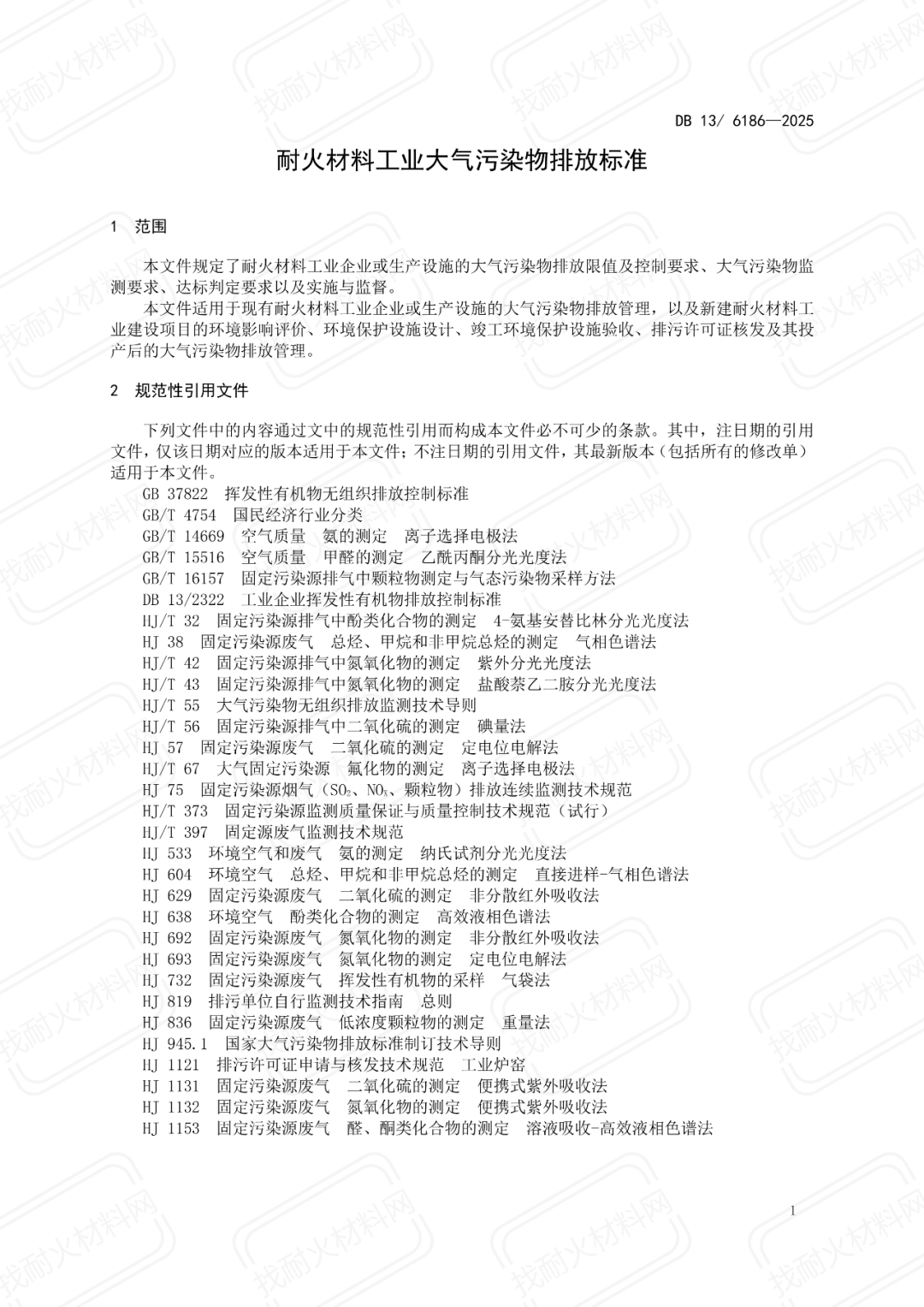 本文件規(guī)定了耐火材料工業(yè)企業(yè)或生產(chǎn)設(shè)施的大氣污染物排放限值及控制要求、大氣污染物監(jiān)測要求、達標判定要求以及實施與監(jiān)督。
