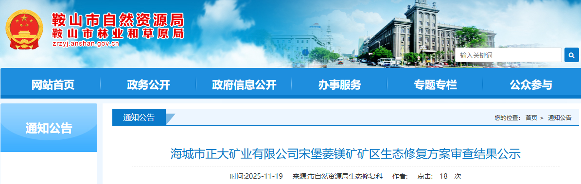 根據(jù)《遼寧省自然資源廳關(guān)于〈中華人民共和國礦產(chǎn)資源法〉實(shí)施衘接過渡期礦區(qū)生態(tài)修復(fù)方案評(píng)審工作的公告》、《遼寧省自然資源廳關(guān)于印發(fā)<礦山地質(zhì)環(huán)境保護(hù)與土地復(fù)墾方案省級(jí)審查管理辦法(試行)>的通知》(遼自然資發(fā)〔2022〕129號(hào))有關(guān)要求,我局組織專家對(duì)《海城市正大礦業(yè)有限公司宋堡菱鎂礦礦區(qū)生態(tài)修復(fù)方案》進(jìn)行了審查。現(xiàn)將擬通過的方案及專家評(píng)審意見進(jìn)行公示,公示期自發(fā)布之日起7個(gè)工作日。
