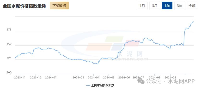 10月22日,全國水泥價格指數報收391.22點,同比漲幅達20.1%。自9月底開始,該指數呈持續上漲姿態。