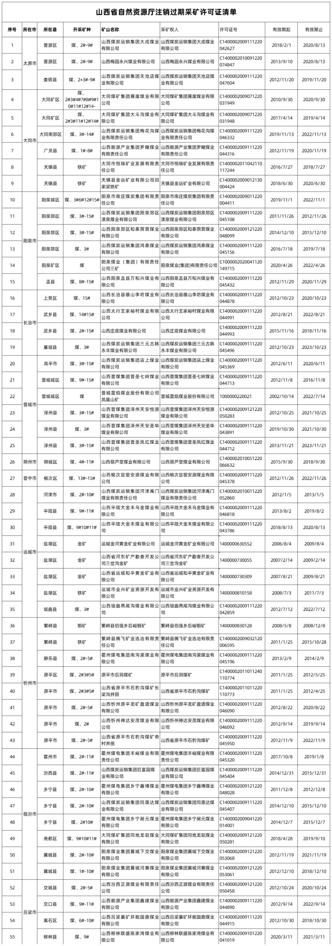 請有關企業自本公告發布之日起30日內,向我廳申請辦理采礦許可證注銷登記手續。逾期不辦理的,我廳將按照規定吊銷采礦許可證,并根據《行政許可法》規定辦理采礦許可證注銷手續。