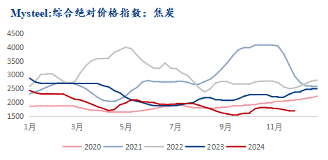 近期焦炭市場價格穩中偏弱運行為主,隨著黑色系盤面走弱,原料煤價格率先降價,加之鋼材價格走弱,鋼廠利潤受損疊加焦炭成本支撐走弱的情況下,截止目前,焦炭價格已下跌3輪,累計降幅150-165元/噸。然而近日宏觀利好政策再次發力,12月中央經濟會議召開在即,市場預期稍有轉好;疊加近日鋼廠冬儲補庫逐步啟動,市場情緒稍有修復,且當前焦鋼企業尚有利潤,因此從焦炭基本面來看,供需矛盾暫不突出,焦炭價格后期繼續下跌的空間也較為有限。