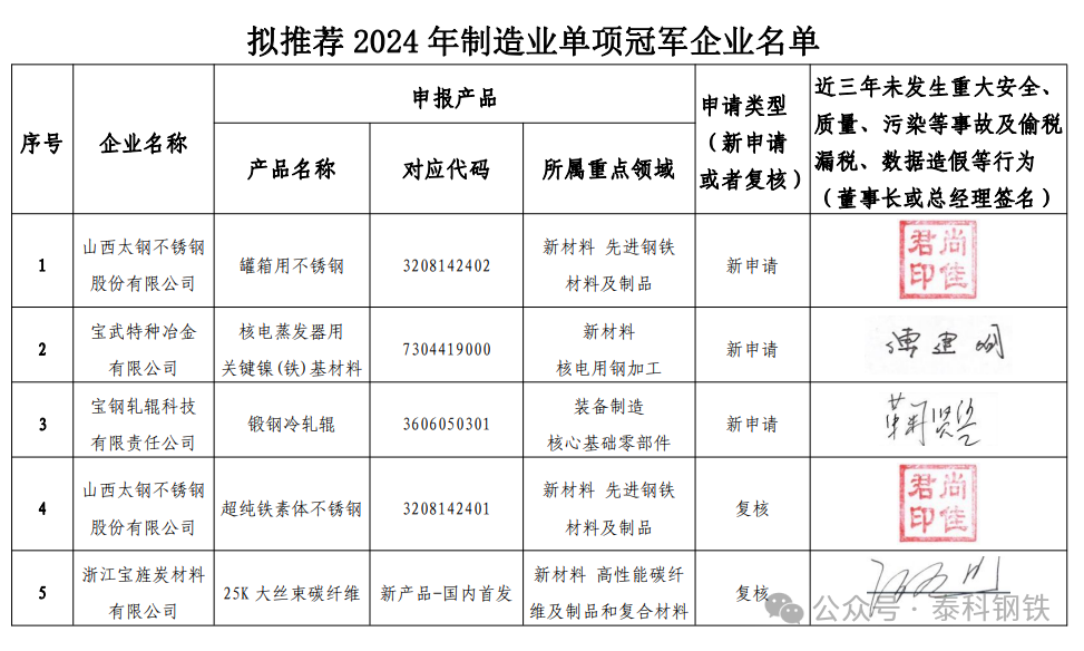 根據(jù)《工業(yè)和信息化部辦公廳關(guān)于開展2024年制造業(yè)單項冠軍企業(yè)遴選認(rèn)定和復(fù)核評價工作的通知》(工信廳政法函〔2024〕328號),經(jīng)嚴(yán)格遴選,我部于2024年10月21日至2024年10月23日對2024年制造業(yè)單項冠軍企業(yè)擬推薦名單進行了公示。按照《工業(yè)和信息化部產(chǎn)業(yè)政策與法規(guī)司關(guān)于規(guī)范擬推薦單項冠軍企業(yè)公示的函》(工政法函〔2024〕97號)要求,為健全事前事中事后全周期管理機制,壓實企業(yè)生產(chǎn)經(jīng)營者責(zé)任,強化事前社會監(jiān)督,現(xiàn)對2024年制造業(yè)單項冠軍企業(yè)擬推薦名單進行再次公示(詳見附件)。