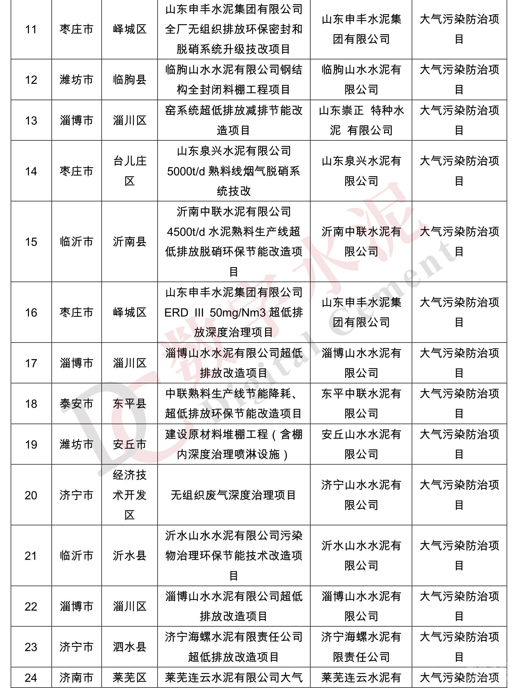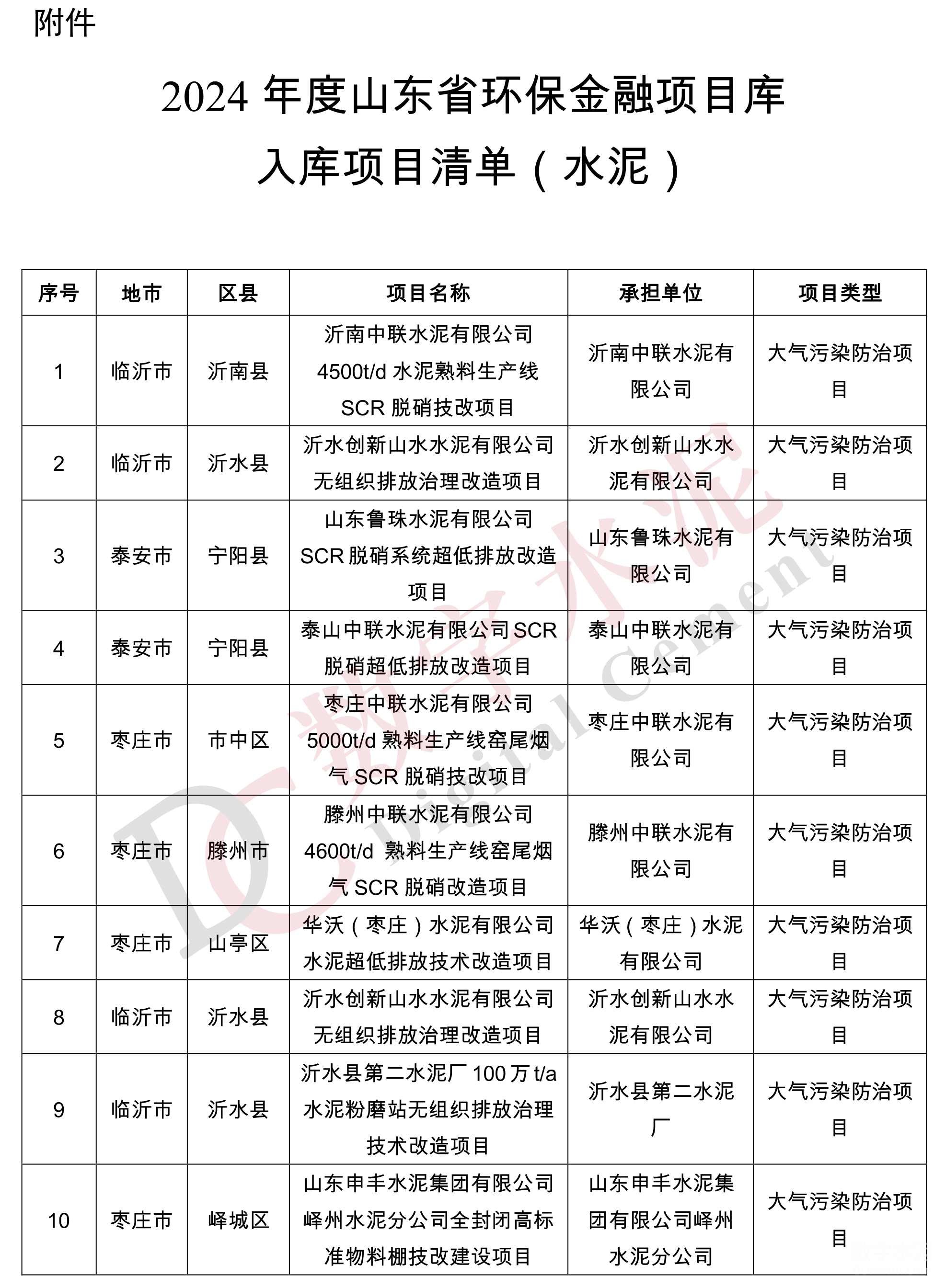 根據公示,中聯、山水等多家水泥企業技改項目擬入選《2024年度山東省環保金融項目庫入庫項目清單》。