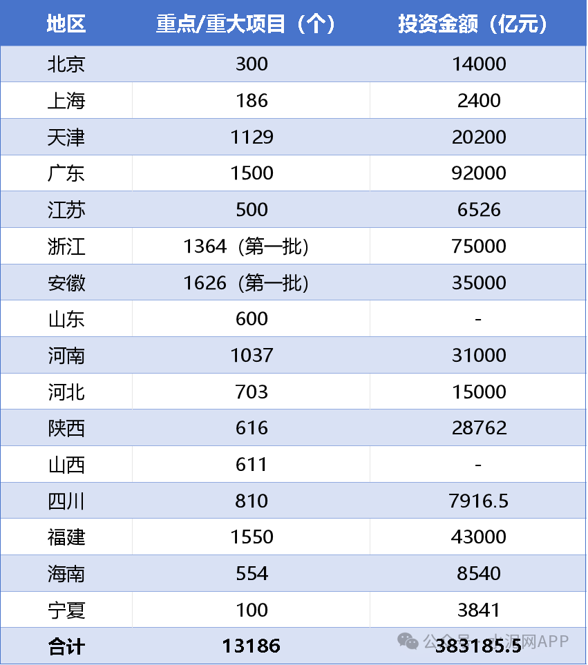 據不完全統計,截至目前,全國已有16個省市自治區發布2025年重點工程項目相關投資計劃,總項目數超1.3萬個,總投資額合計超38萬億元。