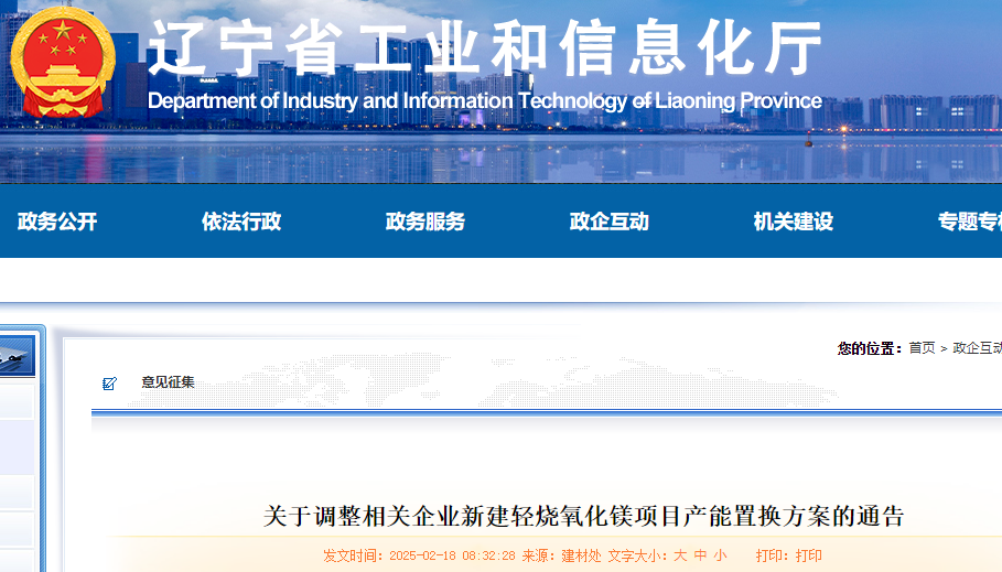按照《遼寧省人民政府辦公廳關于推進菱鎂行業高質量發展的實施意見》(遼政辦發〔2023〕15號)、《遼寧省菱鎂礦浮選及鎂砂行業產能置換辦法》(遼工信建材〔2024〕18號)要求,根據相關市初審和申請,對海城謙源耐火材料有限公司、海城卓繁科技發展有限公司、海城市環菱鎂制品制造有限公司新建輕燒氧化鎂項目產能置換方案進行了調整,現對調整后的產能置換方案重新予以通告。