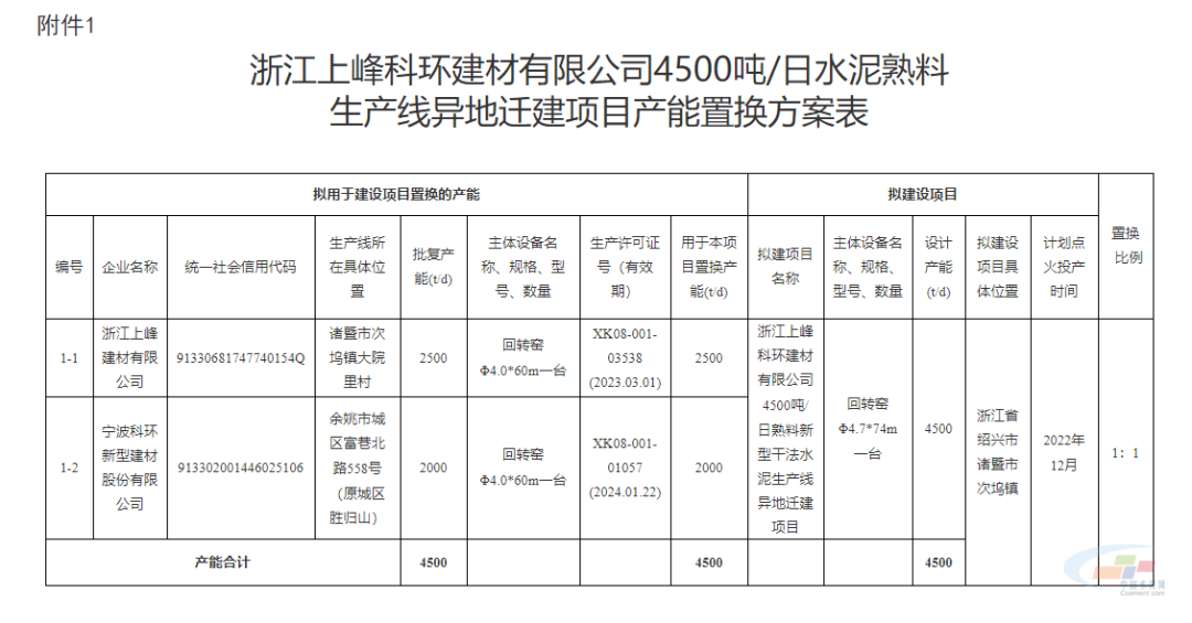 浙江上峰科環建材有限公司申請撤銷《浙江上峰科環建材有限公司4500噸/日水泥熟料生產線異地遷建項目產能置換方案》。經對照《水泥玻璃行業產能置換實施辦法(2024年本)》(工信部原〔2024〕206號)進行審核,現撤銷該產能置換方案并通告。