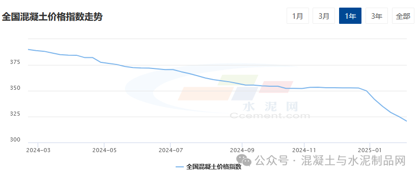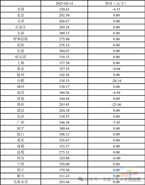 2月10日至2月14日,全國混凝土價格指數報收320.63點,環(huán)比下跌1.39%,同比跌幅為17.78%。分地區(qū)來看,陜西、上海、內蒙古、山西、湖北、山東、廣東以及湖南局部混凝土價格下調10-30元/方不等,國內其他省市混凝土價格繼續(xù)保持穩(wěn)定。
