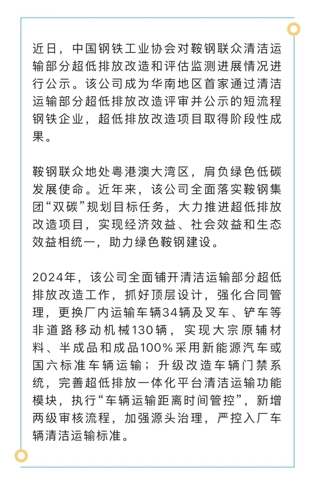 鞍鋼聯(lián)眾清潔運(yùn)輸部分超低排放改造通過國家評(píng)審