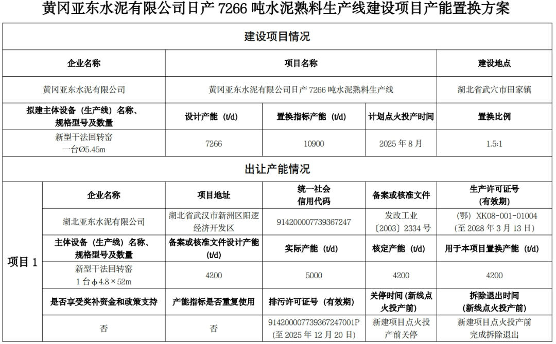 2月20日,湖北省發改委印發2025年省級重點項目清單,其中包含黃岡亞東水泥有限公司武穴制造廠第二條水泥熟料生產線建設工程(7266t/d)項目。據了解,黃岡亞東水泥有限公司擬投資325000萬元,建設一條7266t/d新型干法水泥熟料生產線,年產熟料239.8萬噸,年產水泥300萬噸,主體設備一臺回轉窯,采用先進的六級預熱器帶新型干法窯外預分解燒成工藝,及配套水泥研磨、礦山原料基地、碼頭、5MW光伏發電工程、公共和輔助設施等。