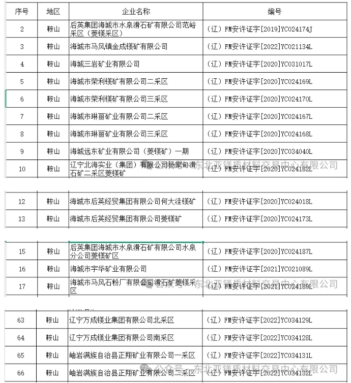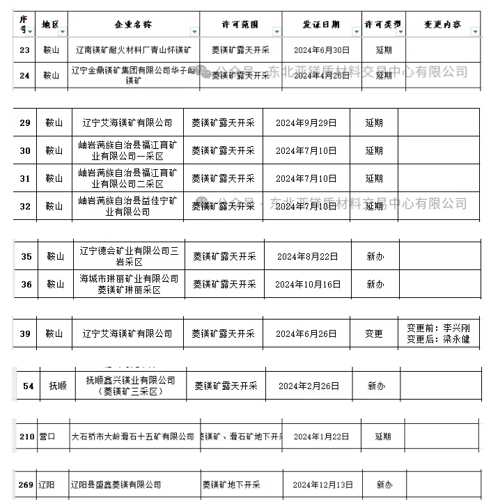附件:2024年頒發(fā)、注銷安全生產(chǎn)許可證名單(點(diǎn)擊可下載完整名單,以下為部分菱鎂礦企名單)