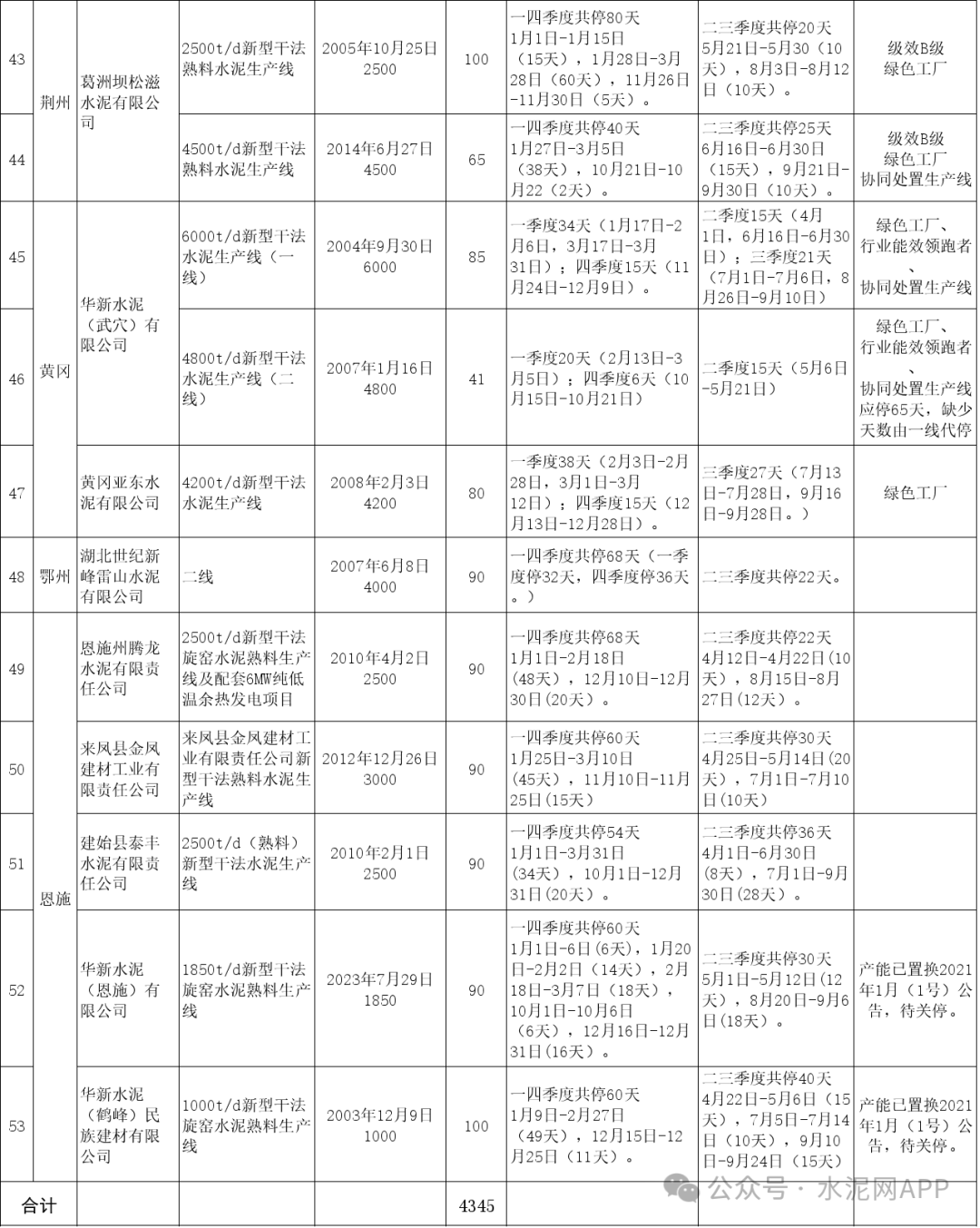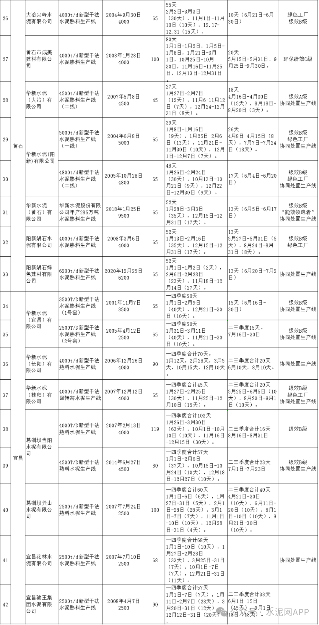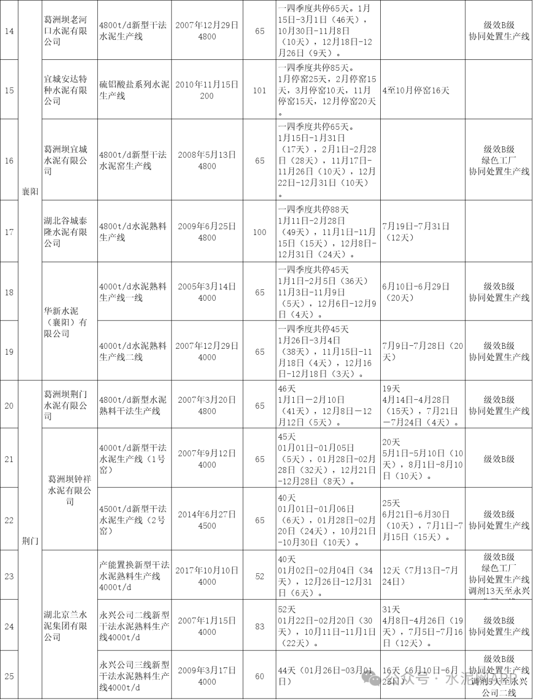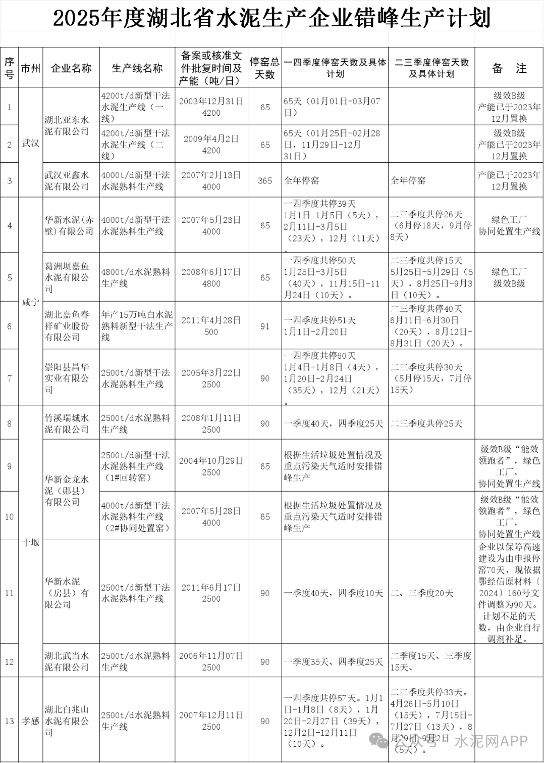 2月27日,湖北省經信廳發布“2025年度湖北省水泥生產企業錯峰生產計劃公示”。