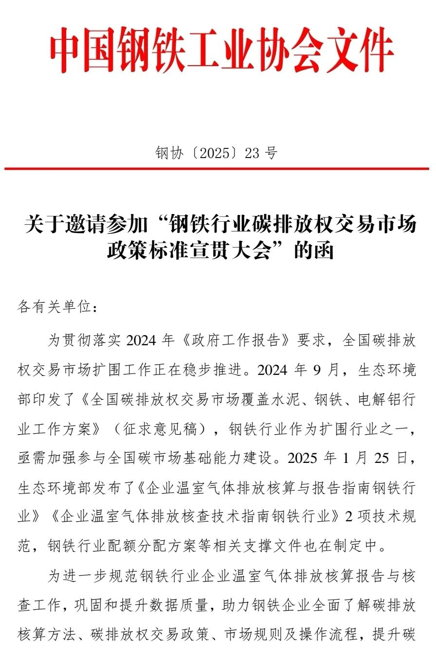關于召開“鋼鐵行業碳排放權交易市場政策標準宣貫大會”的通知?
