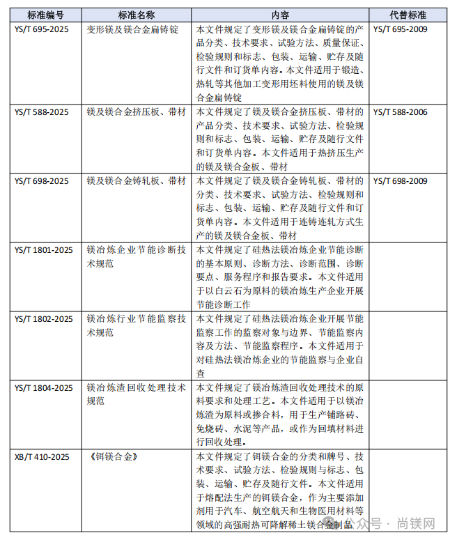 7項涉鎂行業(yè)標(biāo)準(zhǔn)