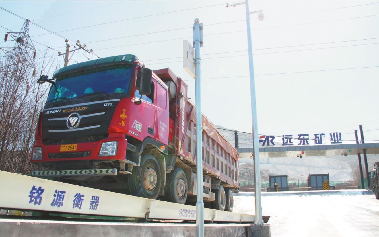 滿載鎂礦石的大貨車正在通過海城市牌樓鎮的遠東計量站,計量站設備與智慧菱鎂大數據平臺聯網,實現智能計量礦石運出量。
