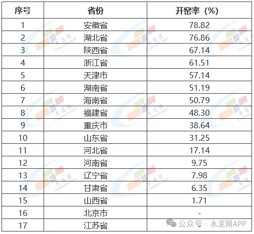 數據來源:水泥大數據(https://data.ccement.com/)數據更新時間:2025-03-21*以上數據,根據中國水泥網大數據平臺測算,開窯率與實際或有出入,開窯率排行僅供參考。