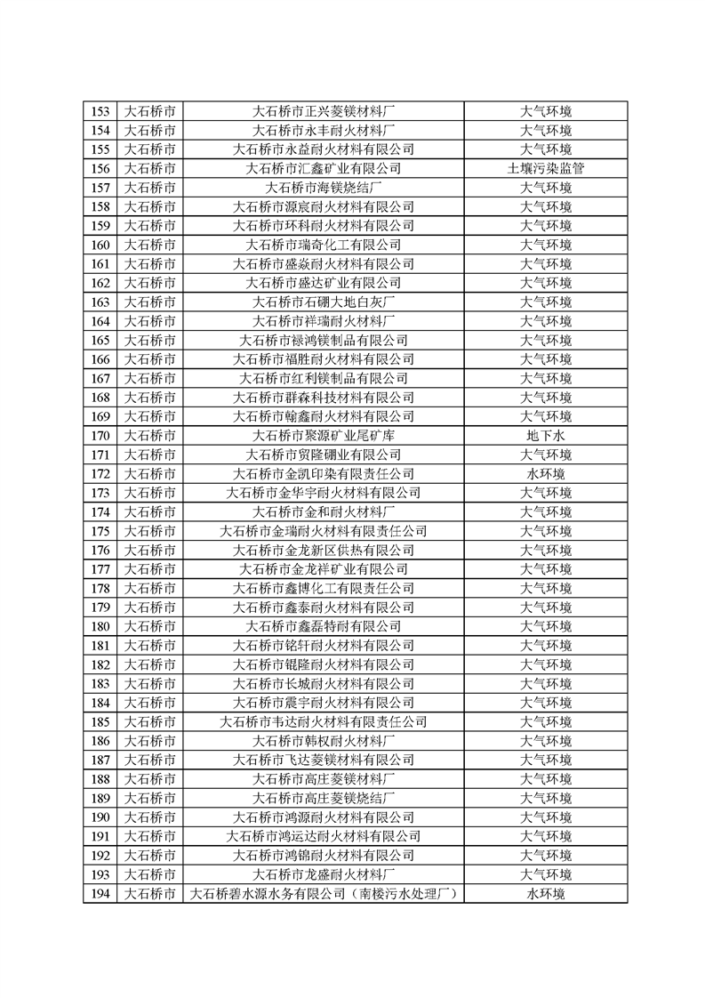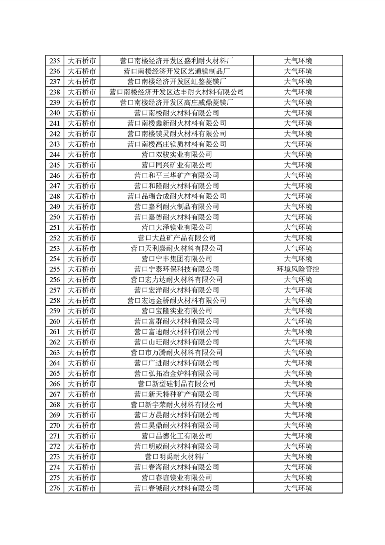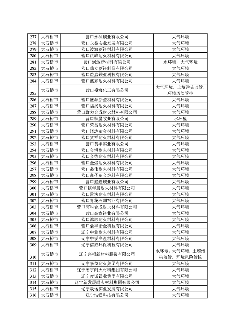 2025年1月起,營口市生態環境局依據《環境監管重點單位名錄管理辦法》(部令27號)有關規定和時間節點要求,開展了本年度環境監管重點單位名錄的更新工作,經縣區申報、市局初審、省廳、生態環境部反饋調整共四輪修改,并征求各科室意見,最終形成《營口市2025年環境監管重點單位名錄》(以下簡稱“名錄”),并在官網予以發布。《名錄》共計422家企業,其中大石橋市企業267家,大部分均為耐火企業,這些企業將全部納入營口市“雙隨機”檢查對象名錄庫,抽查頻次和比例按照省市“雙隨機、一公開”監管工作要求執行。