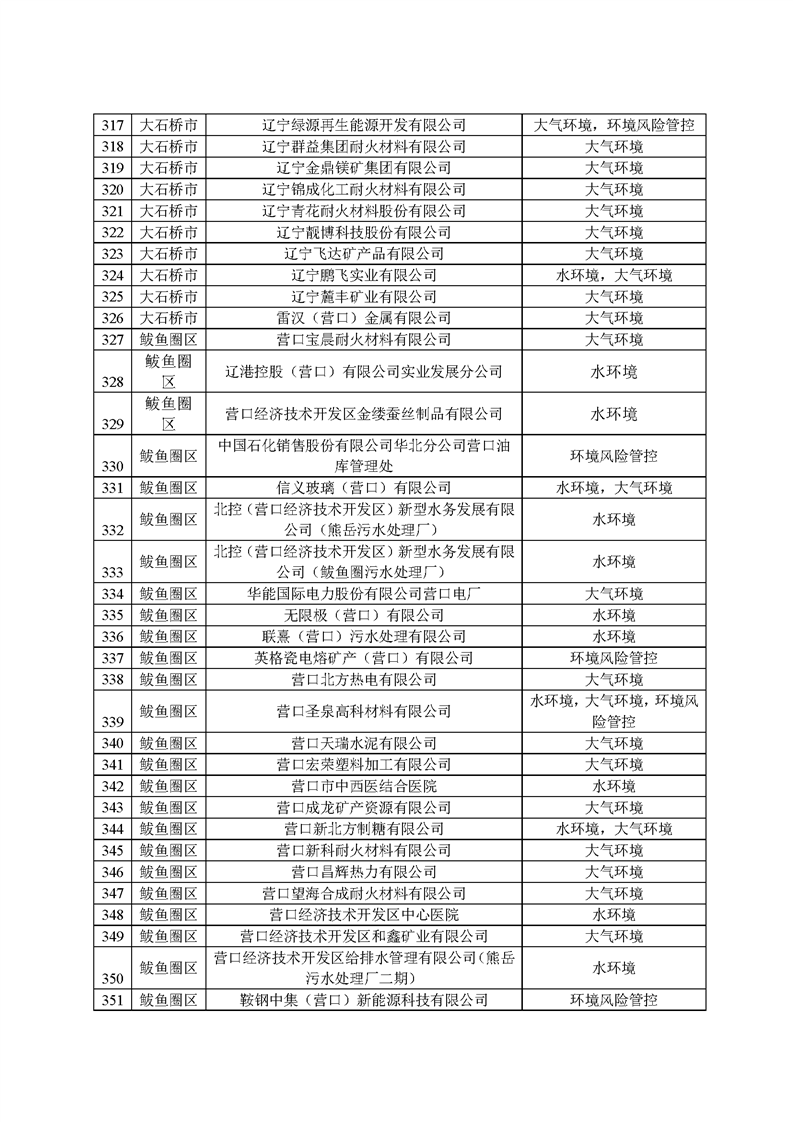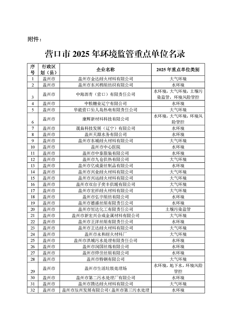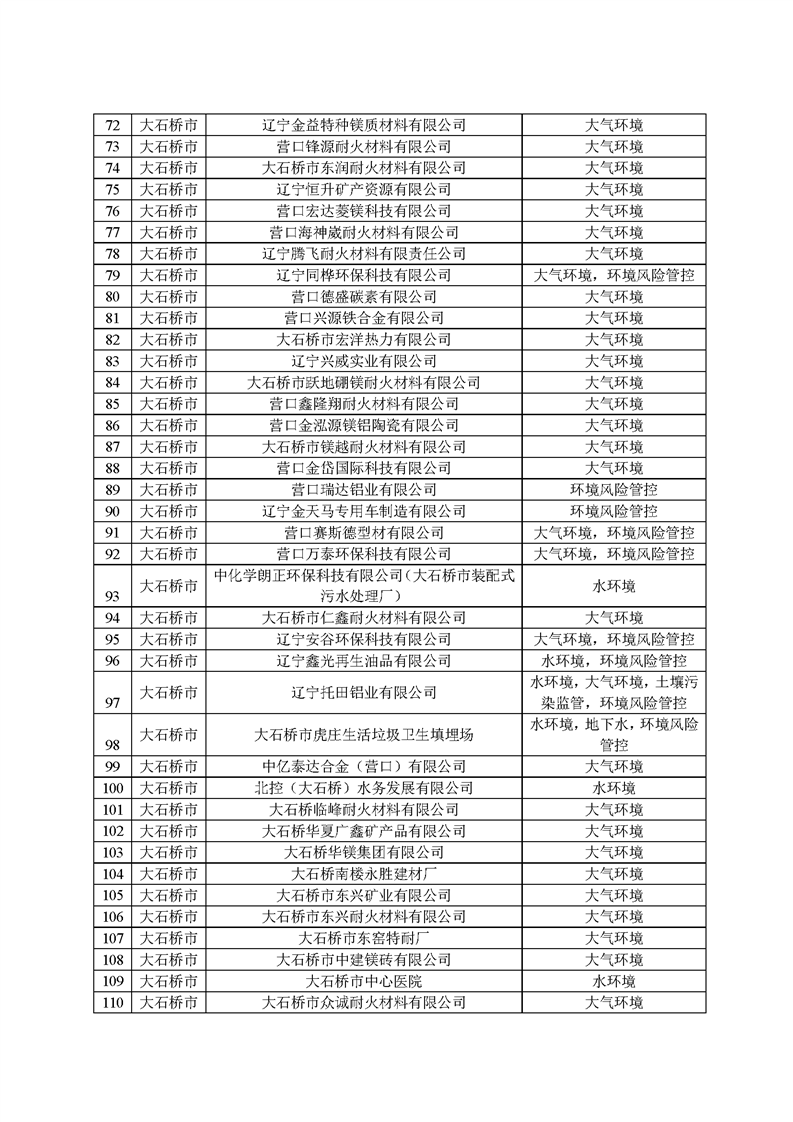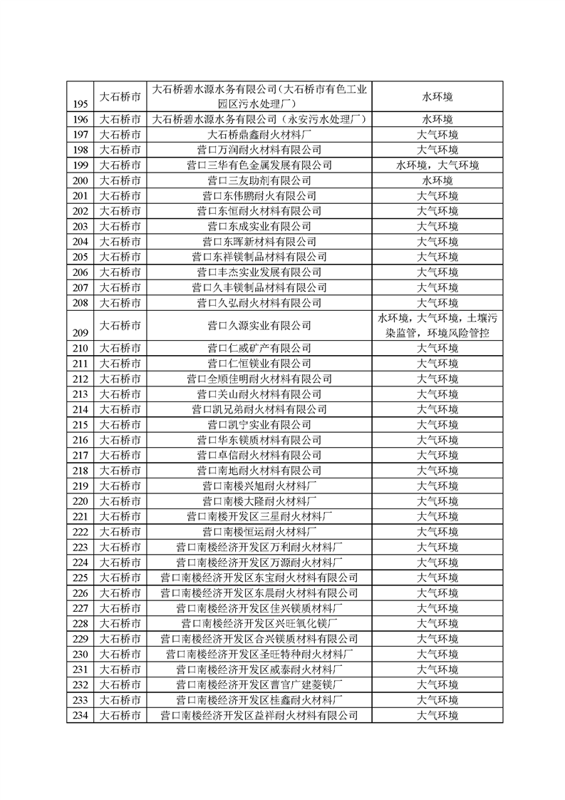 2025年1月起,營口市生態環境局依據《環境監管重點單位名錄管理辦法》(部令27號)有關規定和時間節點要求,開展了本年度環境監管重點單位名錄的更新工作,經縣區申報、市局初審、省廳、生態環境部反饋調整共四輪修改,并征求各科室意見,最終形成《營口市2025年環境監管重點單位名錄》(以下簡稱“名錄”),并在官網予以發布。《名錄》共計422家企業,其中大石橋市企業267家,大部分均為耐火企業,這些企業將全部納入營口市“雙隨機”檢查對象名錄庫,抽查頻次和比例按照省市“雙隨機、一公開”監管工作要求執行。
