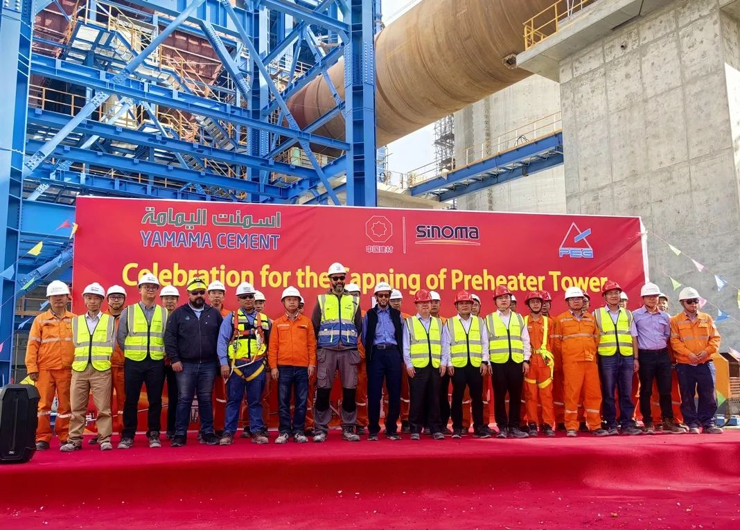 沙特當地時間3月29日下午3點,由中材海外總承包,邯鄲中材承建的沙特YAMAMA水泥公司12500t/d搬遷升級改造項目窯尾塔架順利封頂。