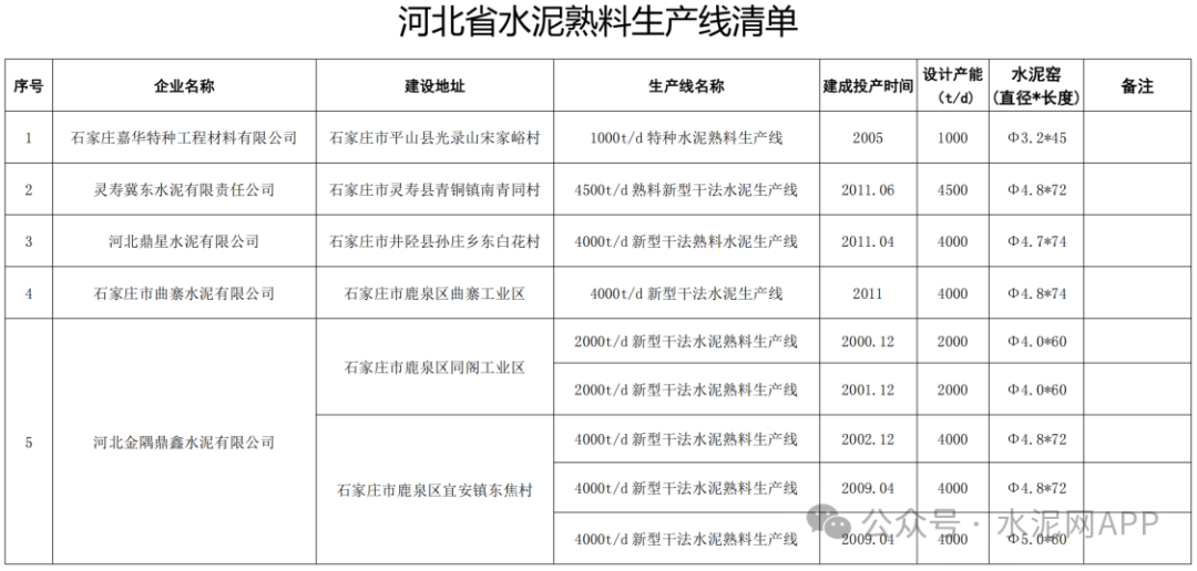 3月31日,河北省工業(yè)和信息化廳公布2024年度全省水泥熟料生產(chǎn)線清單。