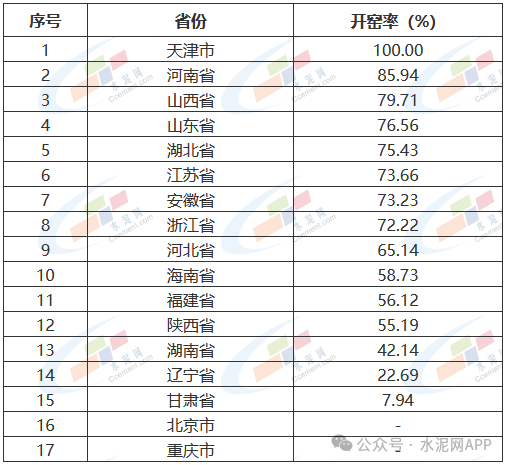 *以上數(shù)據(jù),根據(jù)中國水泥網(wǎng)大數(shù)據(jù)平臺測算,開窯率與實際或有出入,開窯率排行僅供參考。