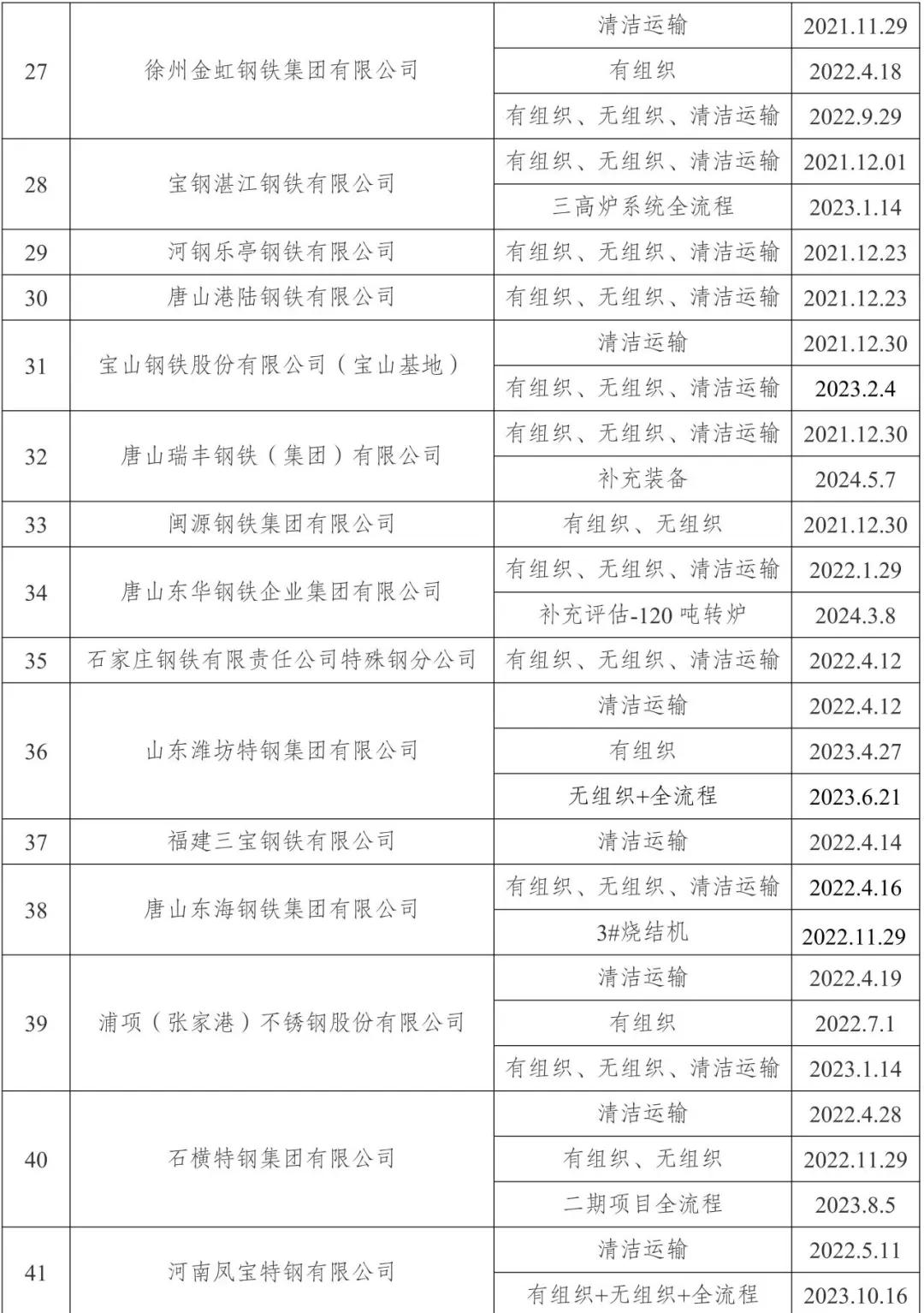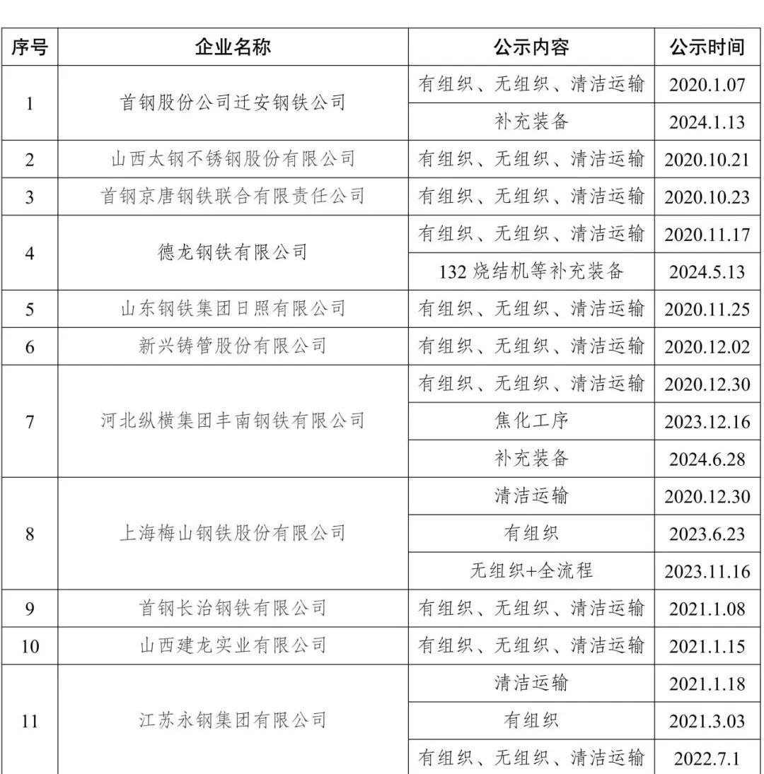 自2020年8月起,中國鋼鐵工業協會開展了鋼鐵企業超低排放改造和評估監測進展情況公示工作。截至目前,已有139家企業在鋼協網站進行公示。已公示企業名單匯總及各企業公示內容整理如下: