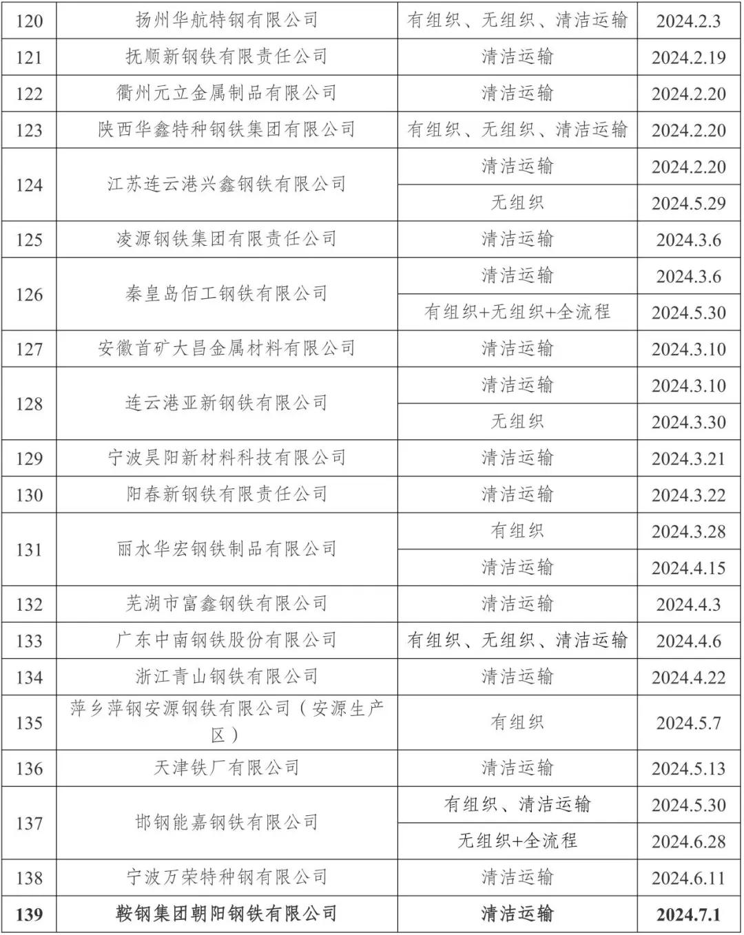 新增朝陽鋼鐵,139家鋼企完成超低排放改造公示!