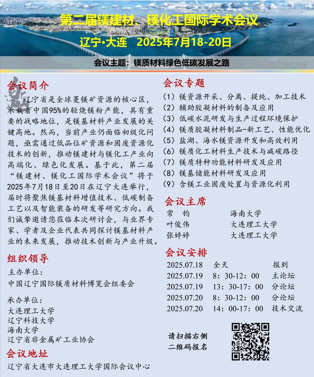 推進(jìn)綠色?低碳發(fā)展——第二屆鎂建材、鎂化工國(guó)際學(xué)術(shù)會(huì)議將在7月召開(kāi)