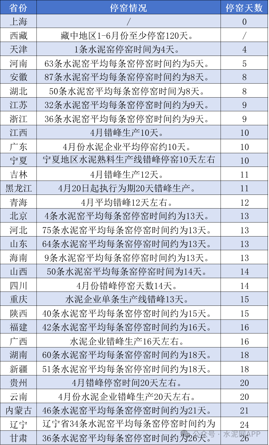 冀東水泥稱,各地非采暖季錯峰計劃已基本落地,計劃河北4-6月每月錯峰10天,計劃河南開20天停20天,山西每月錯峰11-15天,內蒙中西部、東北每月錯峰15-20天。