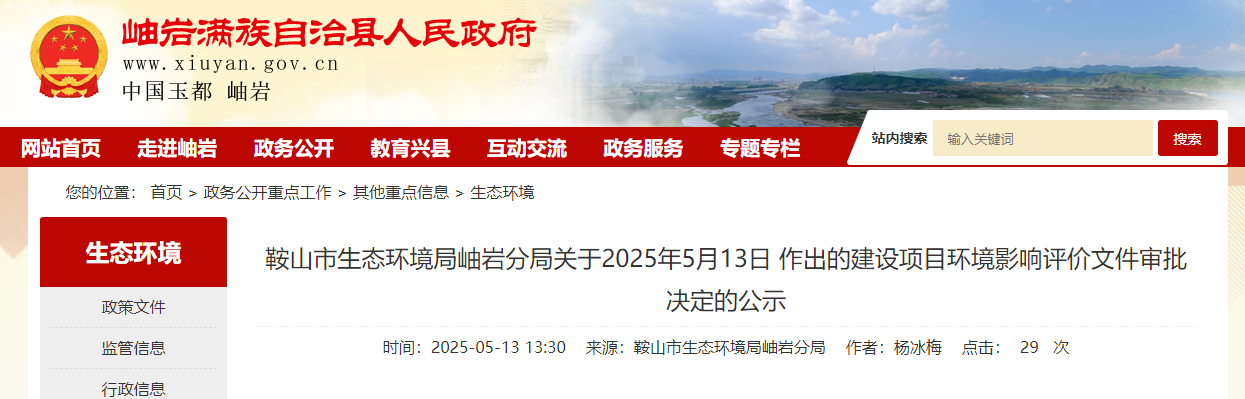根據建設項目環境影響評價審批程序管理的有關規定,經審查,2025年5月13日我局對建設項目環境影響評價文件申請作出審批決定?,F將作出的審批決定情況予以公告,公告期為2025年5月13日-2025年5月21日(7日)。